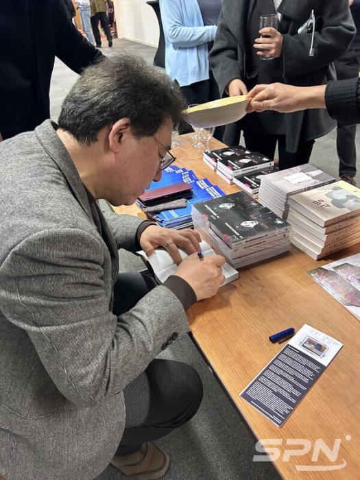 도희윤 대표가 반디의 책 『고발』에 사인을 하고 있다.(사진=도희윤 대표)